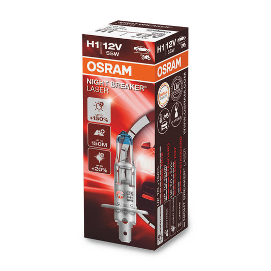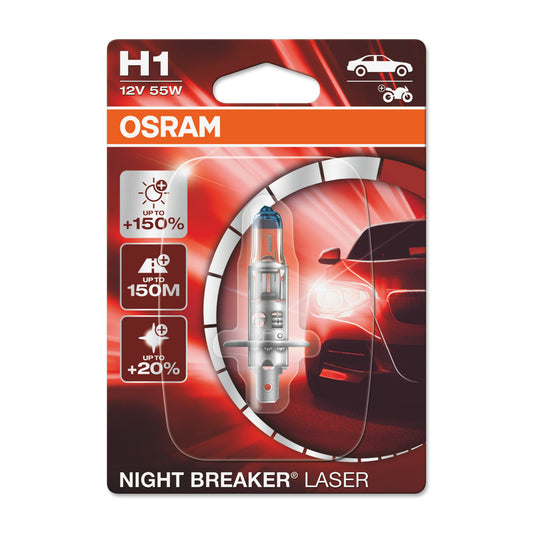 OSRAM NIGHT BREAKER SILVER - Bombilla halógena para faros delanteros H1 - PAQUETE DE 2